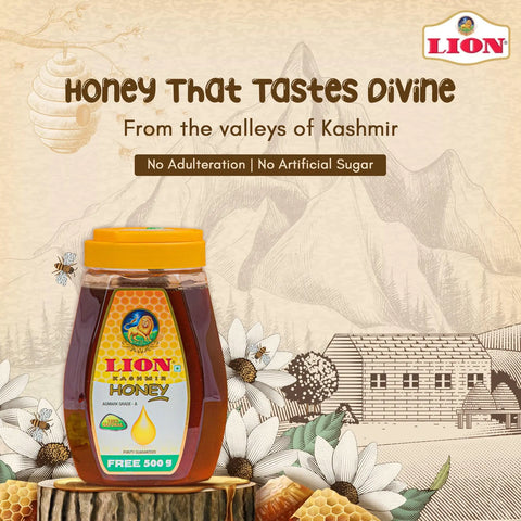 Discover the heavenly taste of natural Kashmir honey with Lion Kashmir Honey. Drizzle Lion Kashmir Honey over your favourites such as roti, toast, pancakes and much more and relish in the divine taste.