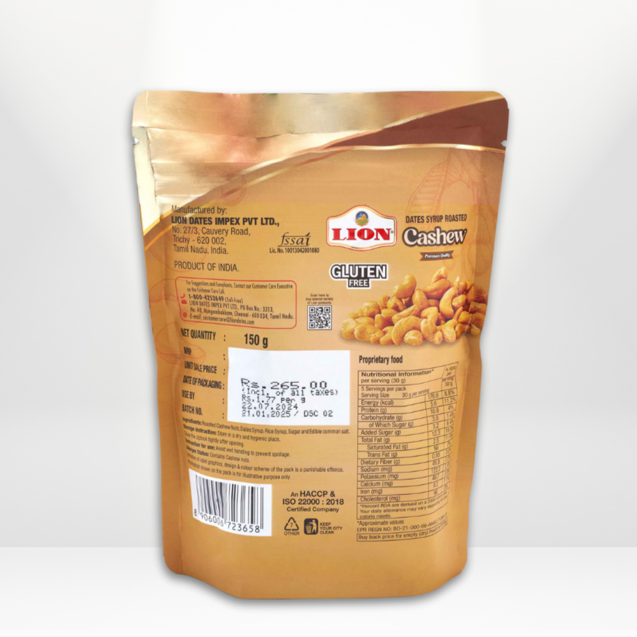 Get your snack game on fleek with Lion Dates' Gluten-Free Date Syrup Roasted Cashews! It's not just a snack; it's a party in a pack.