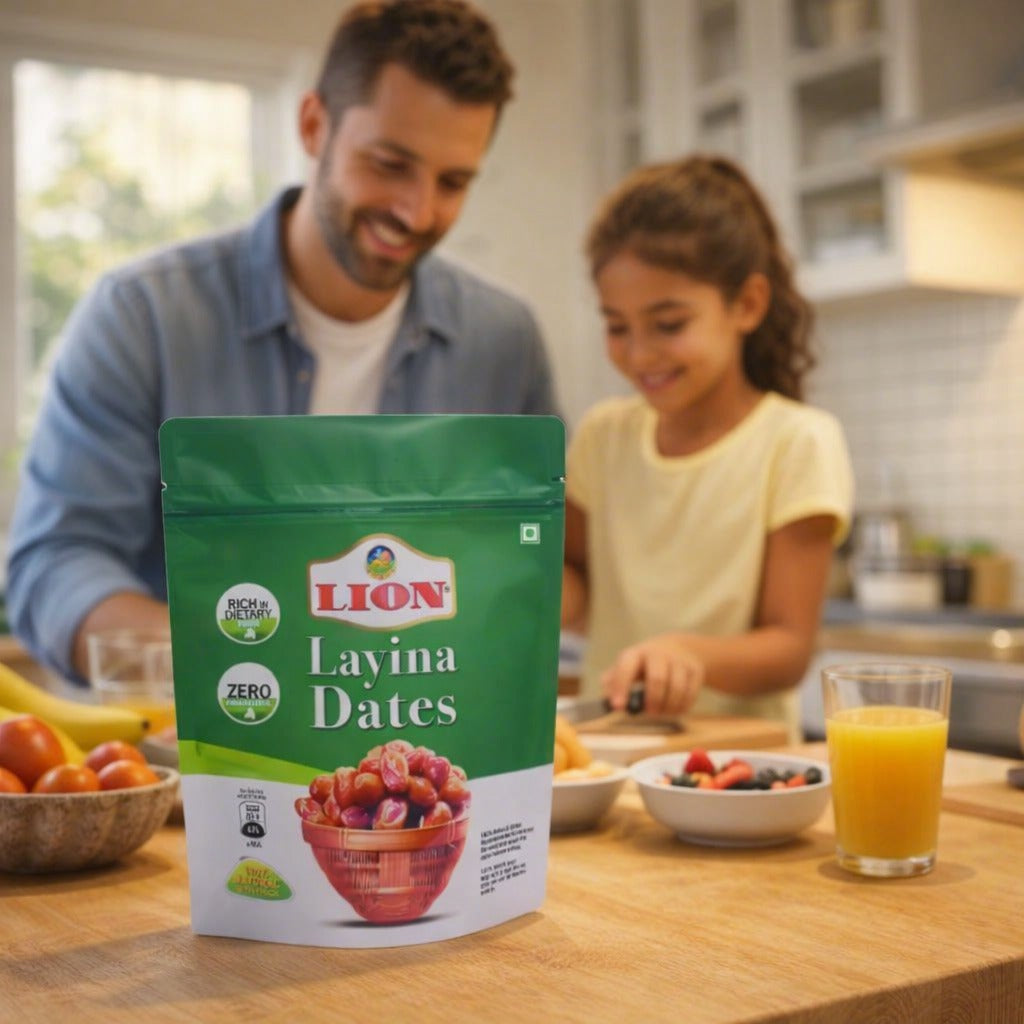 Lion Layina Dates are handpicked Arabian dates rich in dietary fiber and naturally cholesterol-free. They support digestive health, deliver sustained energy through natural sugars, and contribute to heart wellness. Packed with essential nutrients like potassium, magnesium, and iron, these dates offer a nutritious way to satisfy cravings while nourishing your body.